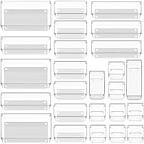 Amazon Com 25 Pcs Drawer Organizer Set Dresser Desk Drawer Dividers 4 Size Bathroom Vanity Cosmetic Makeup Trays Multipurpose Clear Plastic Storage Bins For Jewelries Kitchen Gadgets And Office Accessories Home Kitchen
